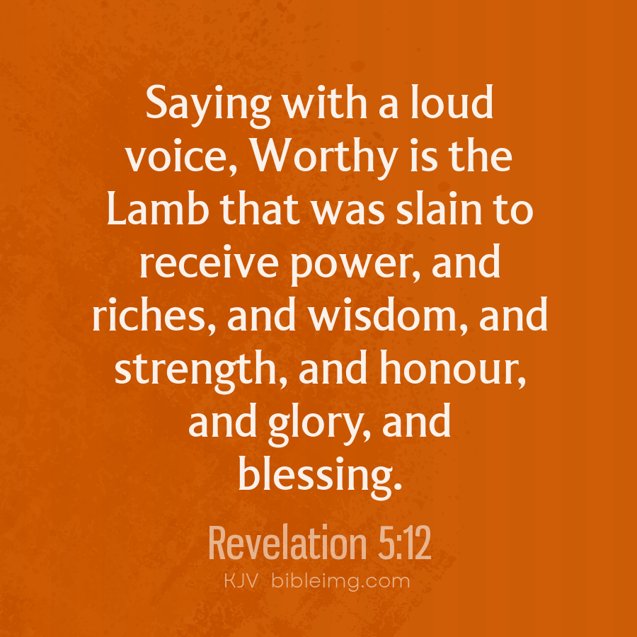 Saying with a loud voice, Worthy is the Lamb that was slain to receive power, and riches, and wisdom, and strength, and honour, and glory, and blessing.