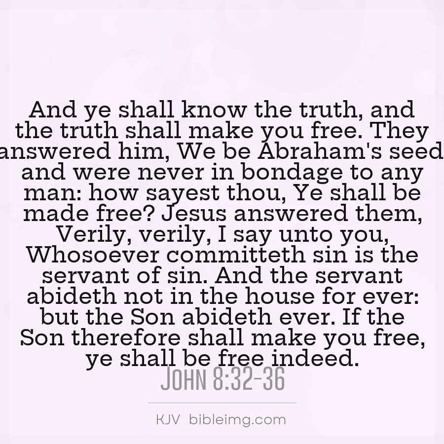 And ye shall know the truth, and the truth shall make you free. They answered him, We be Abraham's seed, and were never in bondage to any man: how sayest thou, Ye shall be made free? Jesus answered them, Verily, verily, I say unto you, Whosoever committeth sin is the servant of sin. And the servant