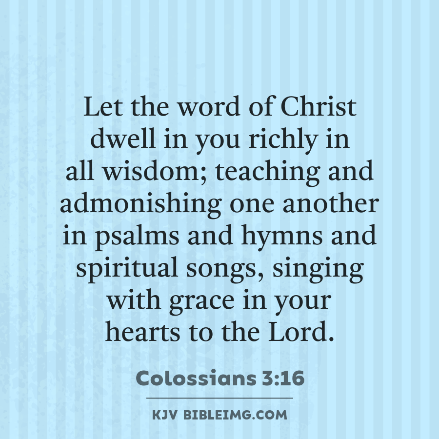 Let the word of Christ dwell in you richly in all wisdom; teaching and admonishing one another in psalms and hymns and spiritual songs, singing with grace in your hearts to the Lord.