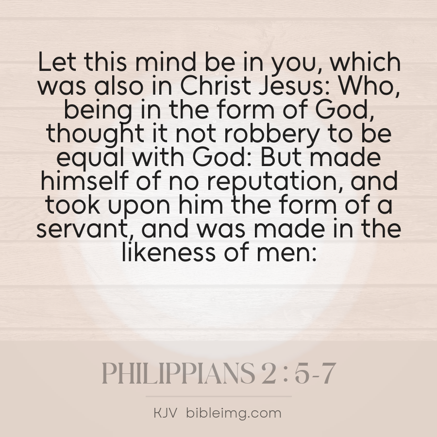 Let this mind be in you, which was also in Christ Jesus: Who, being in the form of God, thought it not robbery to be equal with God: But made himself of no reputation, and took upon him the form of a servant, and was made in the likeness of men: And being found in fashion as a man, he humbled himsel