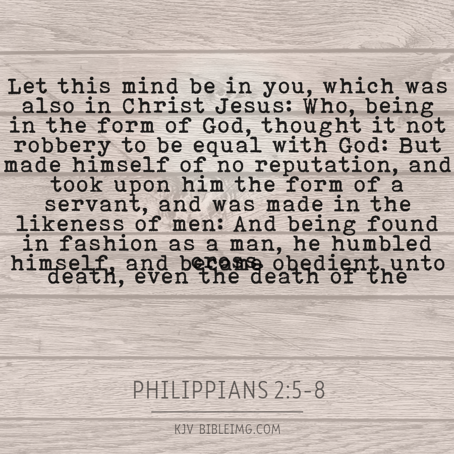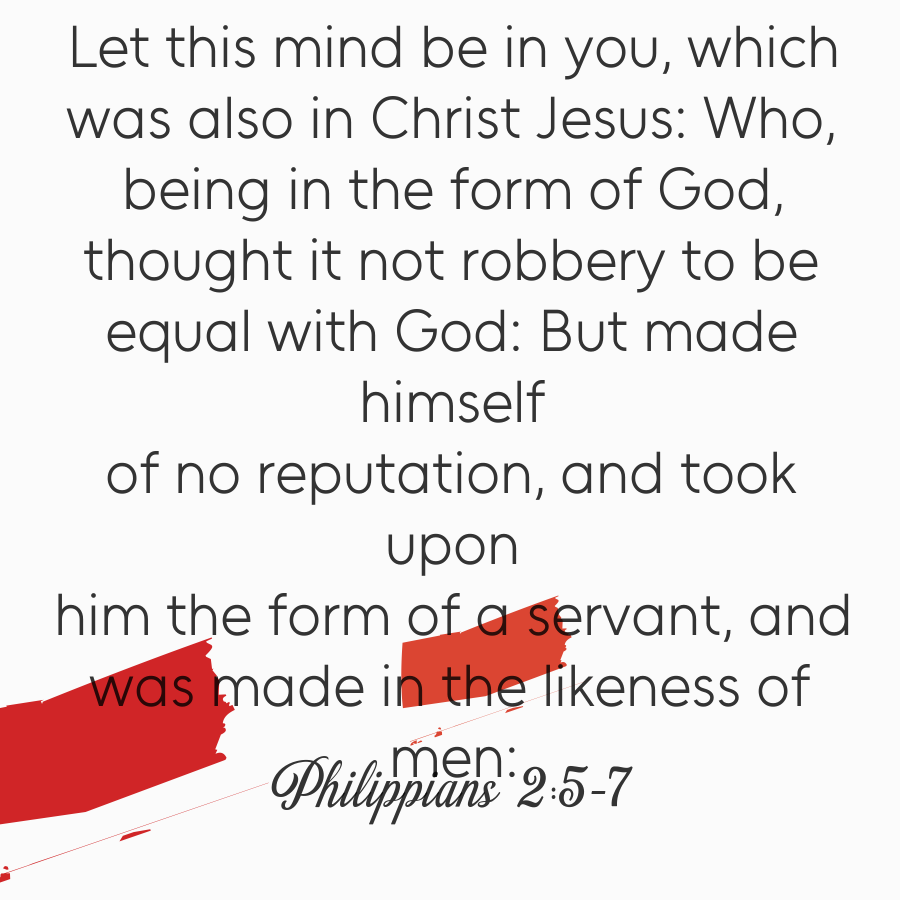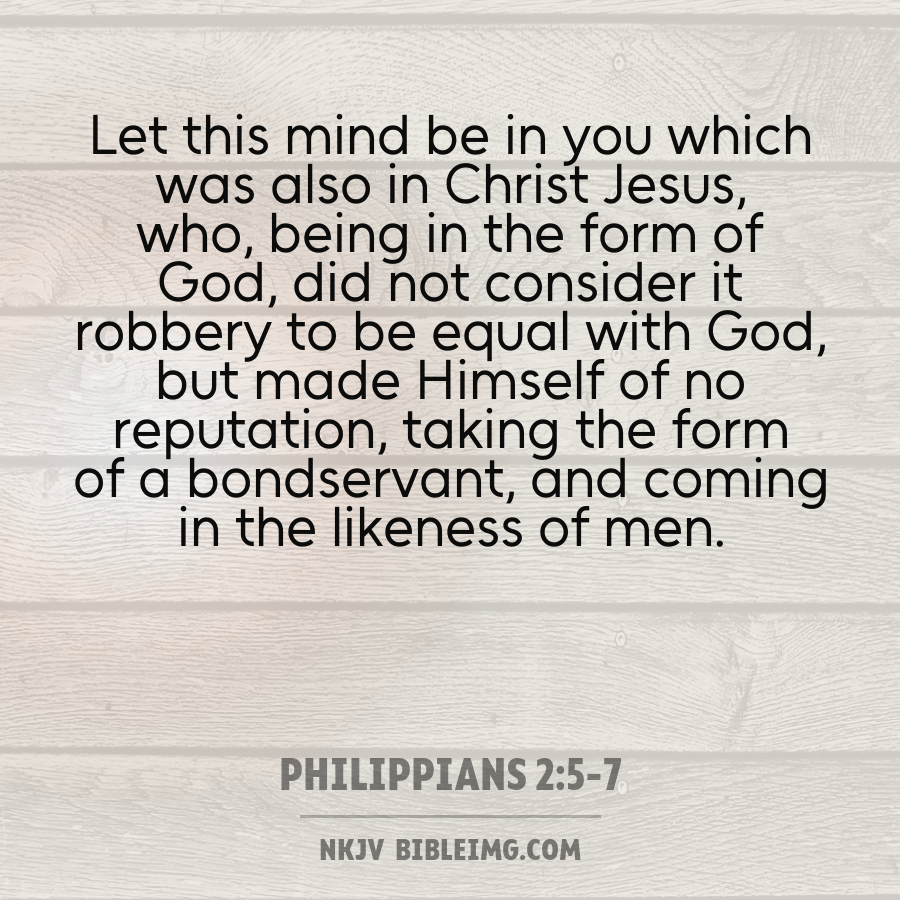 Let this mind be in you, which was also in Christ Jesus: Who, being in the form of God, thought it not robbery to be equal with God: But made himself of no reputation, and took upon him the form of a servant, and was made in the likeness of men: And being found in fashion as a man, he humbled himsel