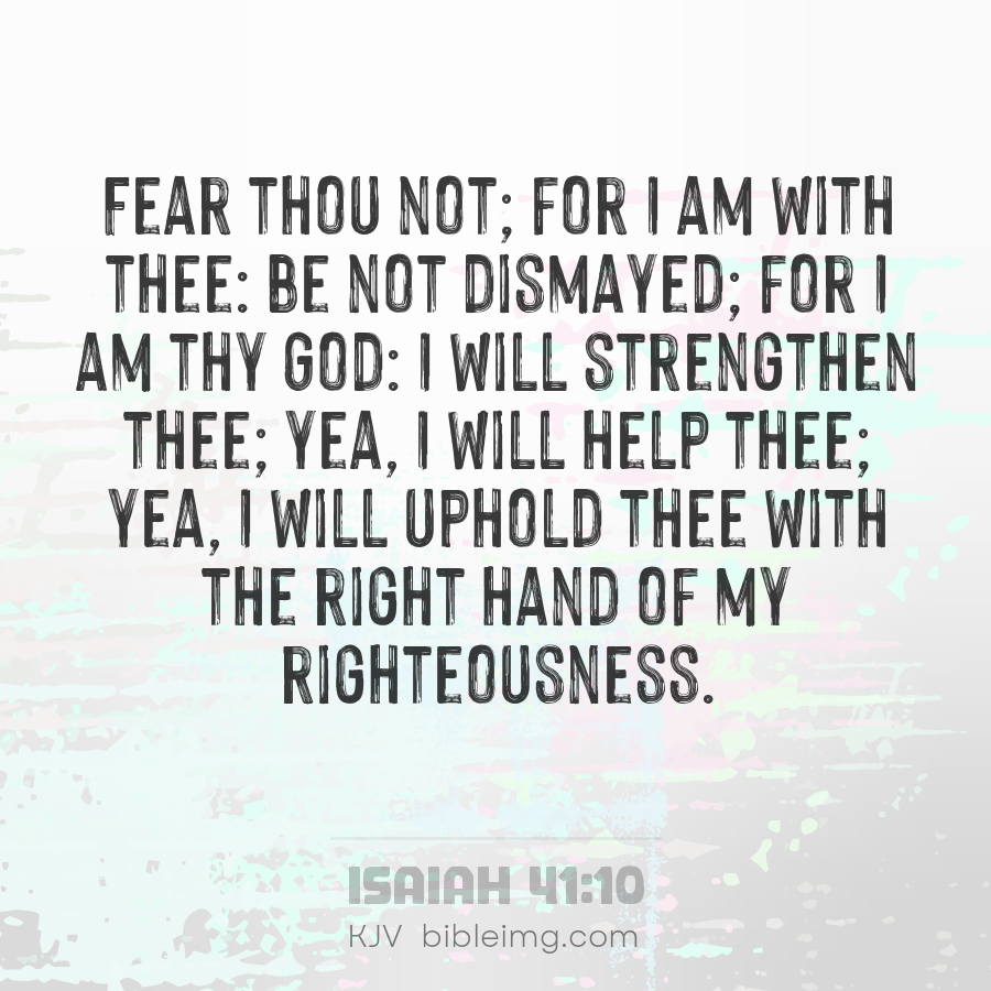 Fear thou not; for I am with thee: be not dismayed; for I am thy God: I will strengthen thee; yea, I will help thee; yea, I will uphold thee with the right hand of my righteousness.