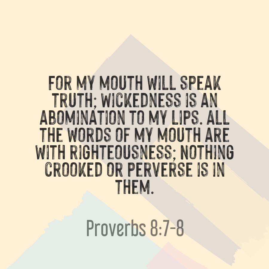For my mouth will speak truth; Wickedness is an abomination to my lips. All the words of my mouth are with righteousness; Nothing crooked or perverse is in them.