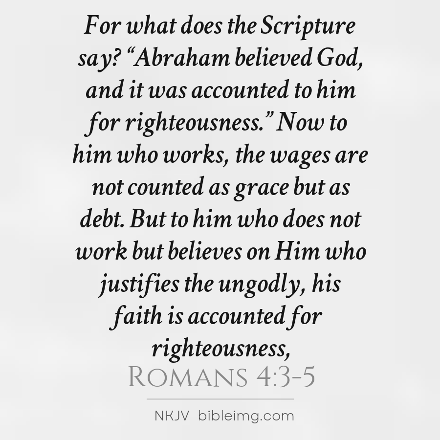 For what does the Scripture say? “Abraham believed God, and it was accounted to him for righteousness.” Now to him who works, the wages are not counted as grace but as debt. But to him who does not work but believes on Him who justifies the ungodly, his faith is accounted for righteousness,
