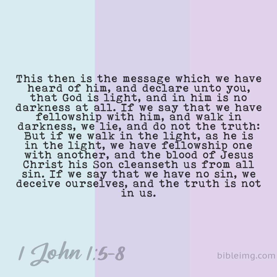 This then is the message which we have heard of him, and declare unto you, that God is light, and in him is no darkness at all. If we say that we have fellowship with him, and walk in darkness, we lie, and do not the truth: But if we walk in the light, as he is in the light, we have fellowship one w