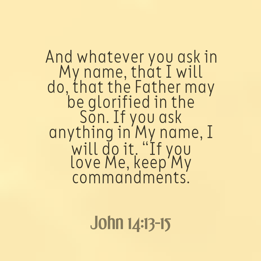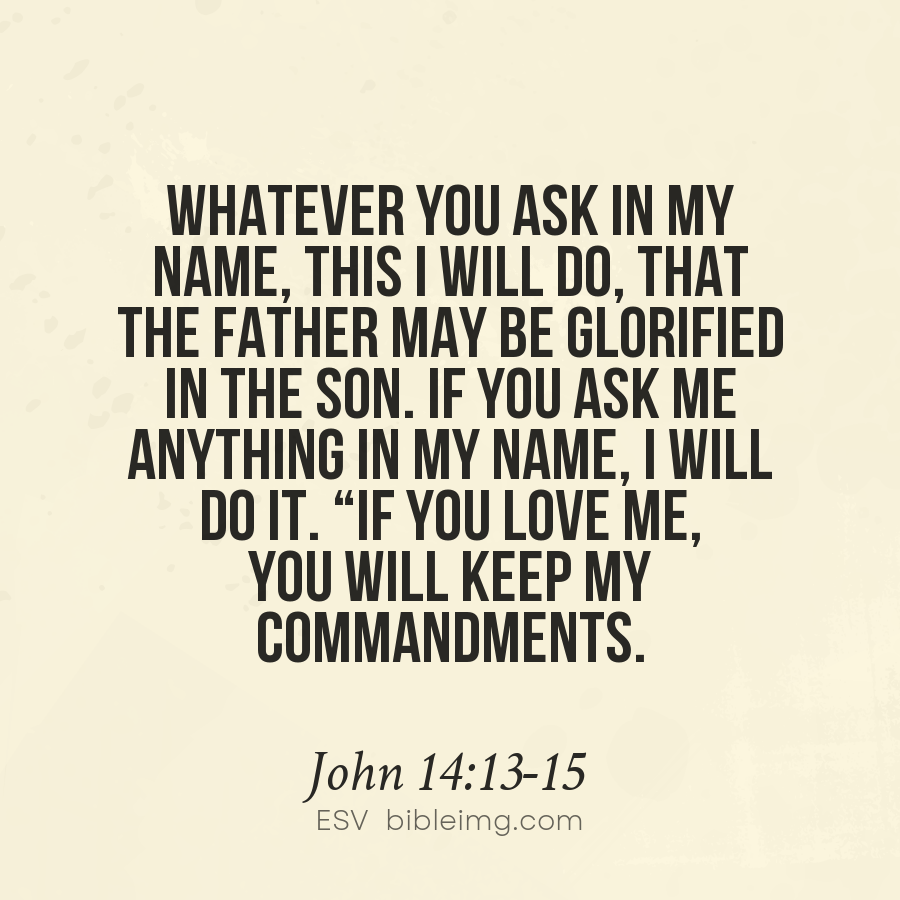 And whatsoever ye shall ask in my name, that will I do, that the Father may be glorified in the Son. If ye shall ask any thing in my name, I will do it. If ye love me, keep my commandments.
