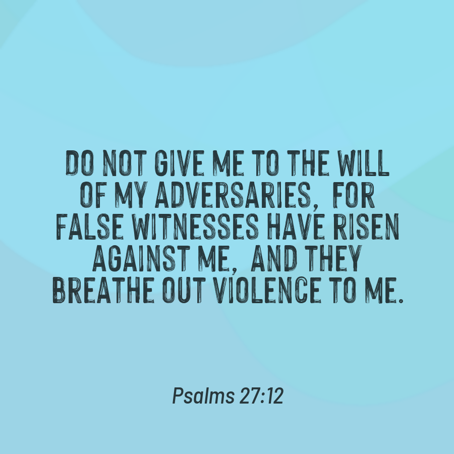 Do not give me to the will of my adversaries, For false witnesses have risen against me, And they breathe out violence to me.