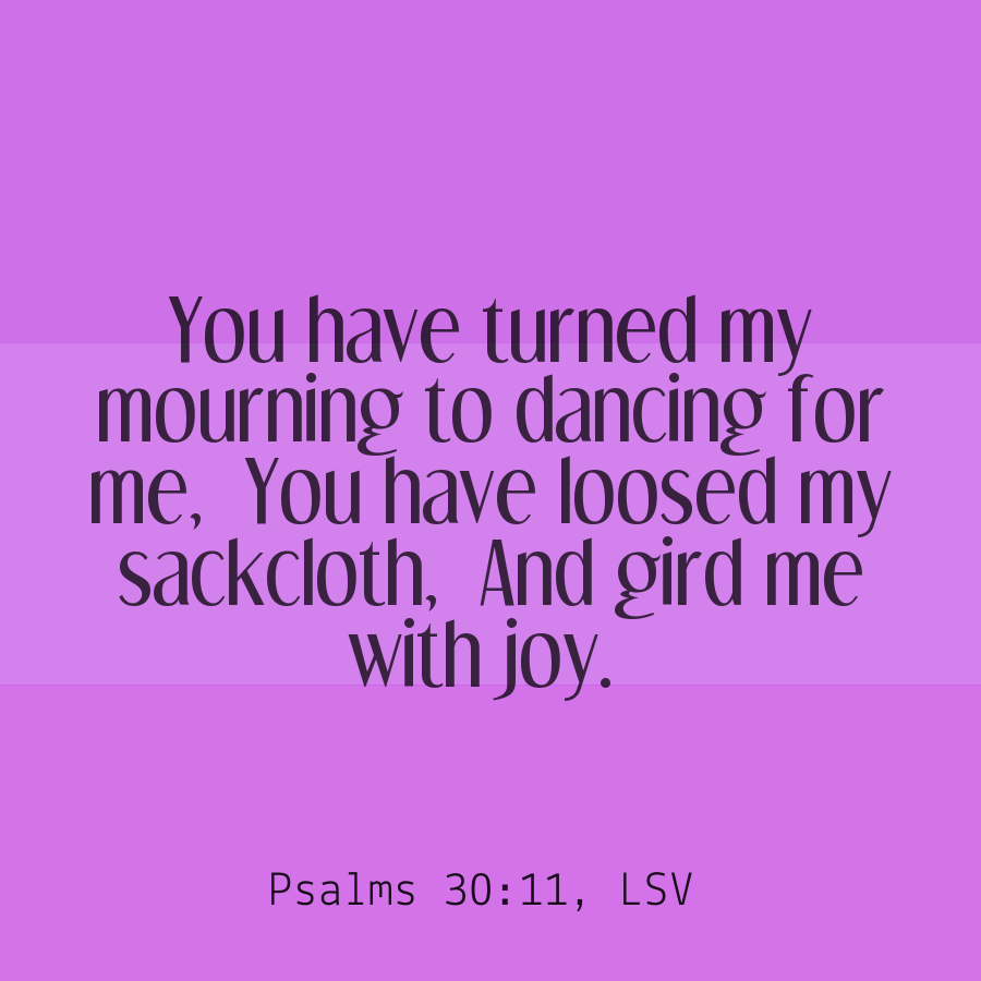You have turned my mourning to dancing for me, You have loosed my sackcloth, And gird me with joy.