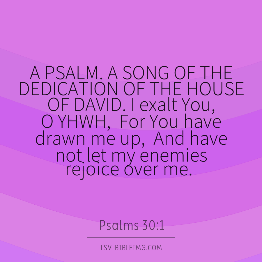 A PSALM. A SONG OF THE DEDICATION OF THE HOUSE OF DAVID. I exalt You, O YHWH, For You have drawn me up, And have not let my enemies rejoice over me.