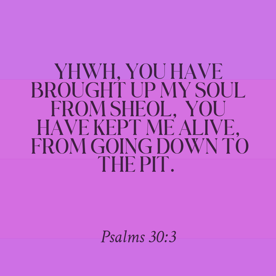 YHWH, You have brought up my soul from Sheol, You have kept me alive, From going down to the pit.