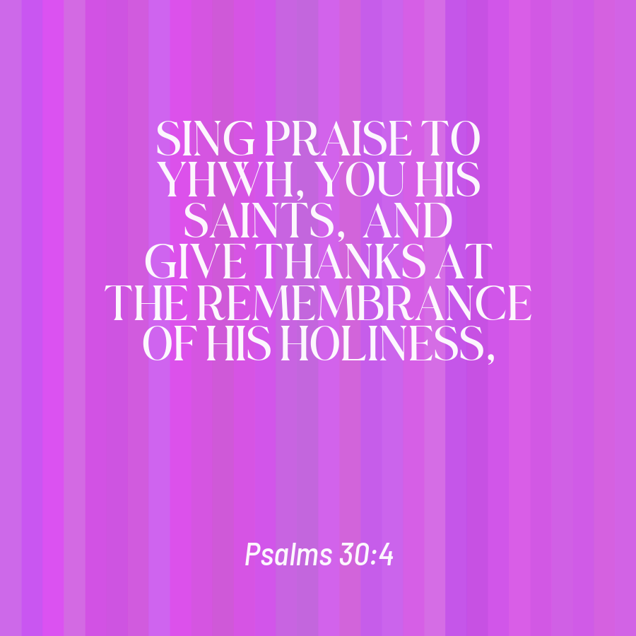 Sing praise to YHWH, you His saints, And give thanks at the remembrance of His holiness,