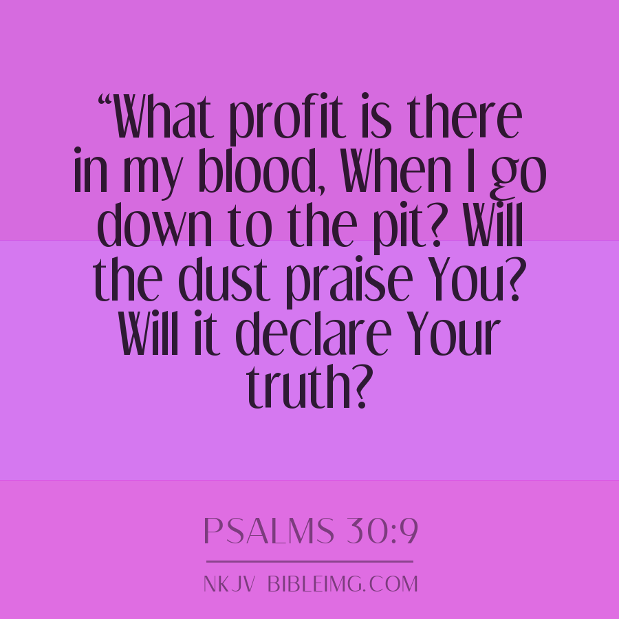 “What profit is there in my blood, When I go down to the pit? Will the dust praise You? Will it declare Your truth?