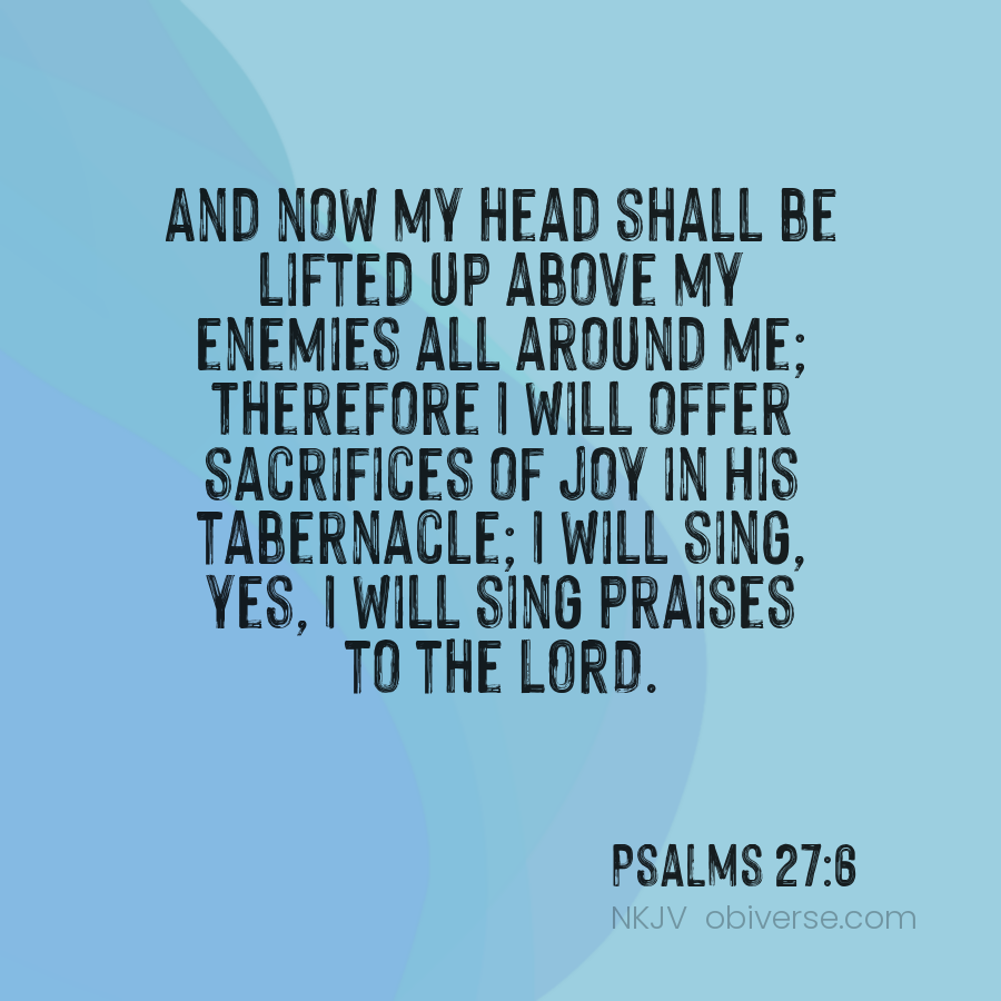 And now my head shall be lifted up above my enemies all around me; Therefore I will offer sacrifices of joy in His tabernacle; I will sing, yes, I will sing praises to the LORD.