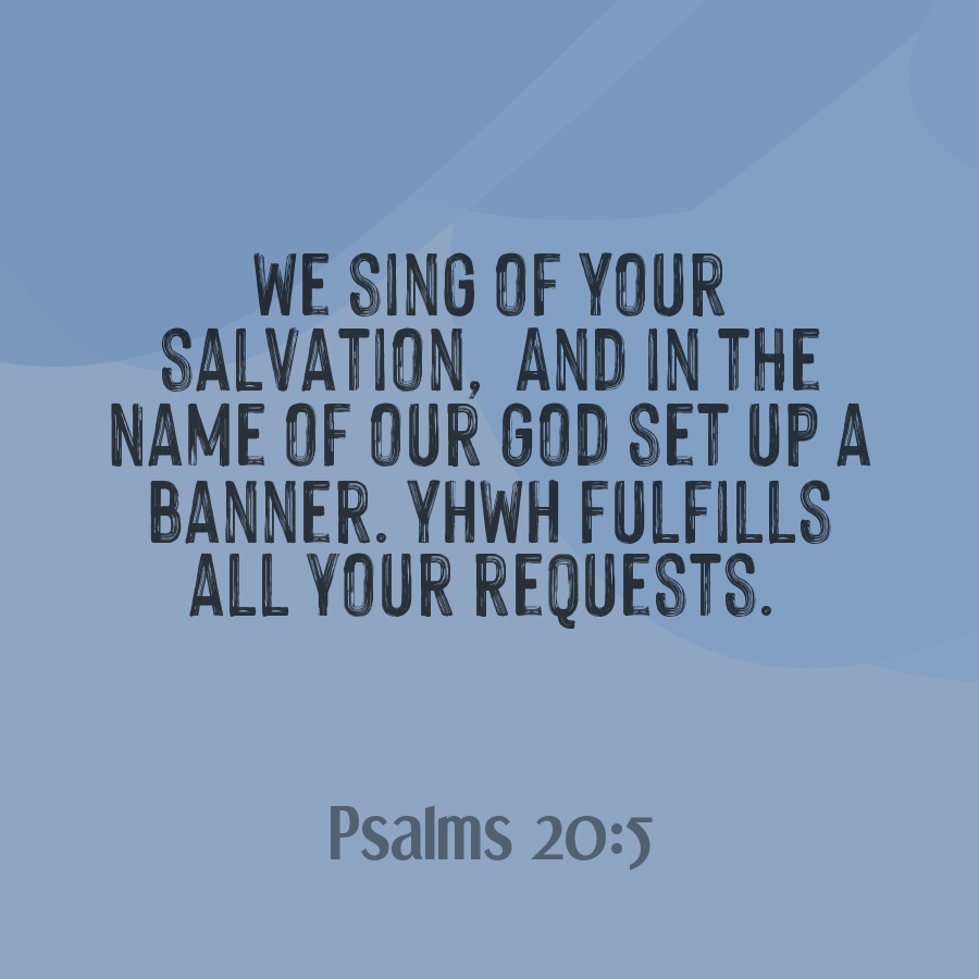 We sing of Your salvation, And in the Name of our God set up a banner. YHWH fulfills all your requests.