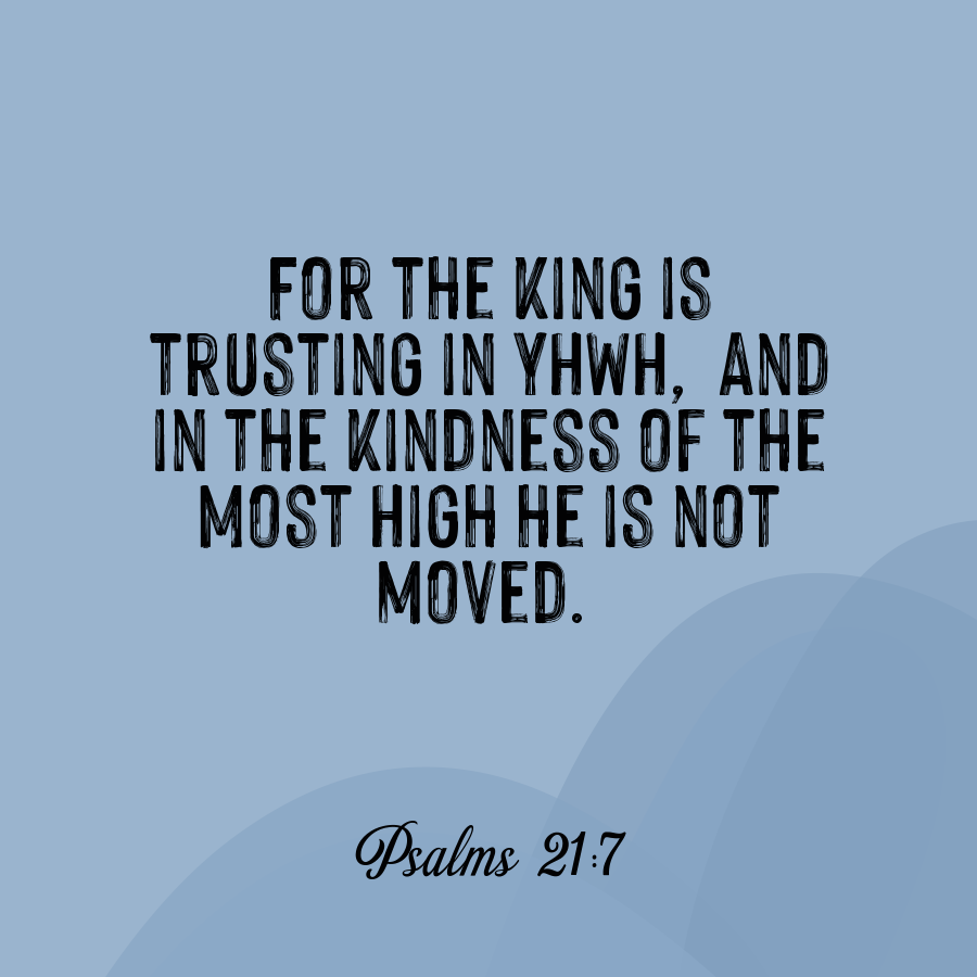 For the king is trusting in YHWH, And in the kindness of the Most High he is not moved.