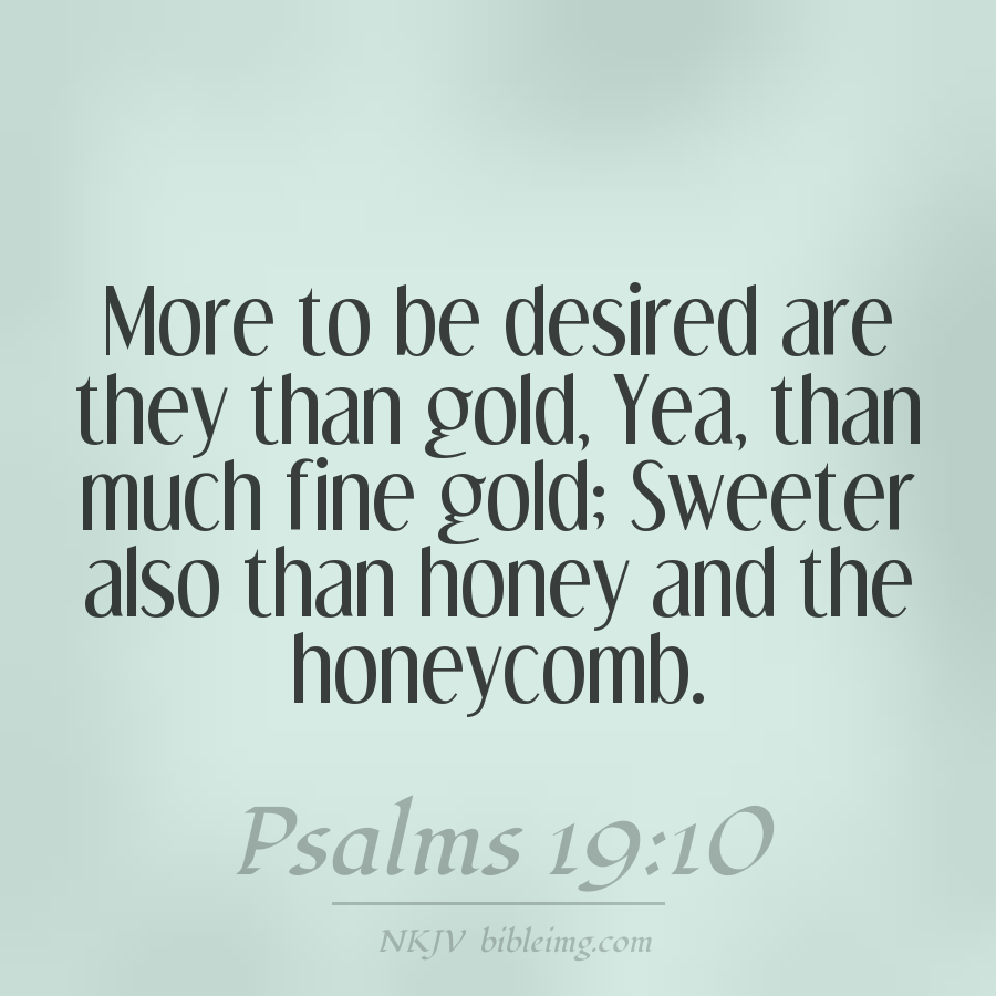 More to be desired are they than gold, Yea, than much fine gold; Sweeter also than honey and the honeycomb.