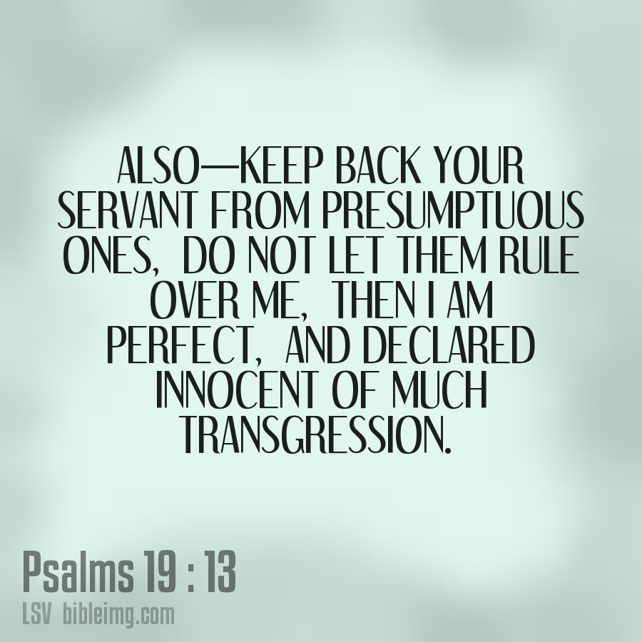 Also—keep back Your servant from presumptuous ones, Do not let them rule over me, Then I am perfect, And declared innocent of much transgression.