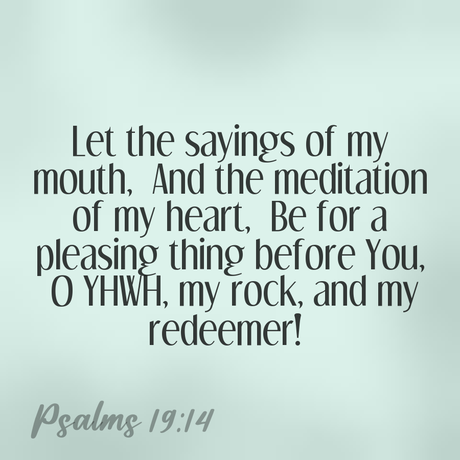 Let the sayings of my mouth, And the meditation of my heart, Be for a pleasing thing before You, O YHWH, my rock, and my redeemer!