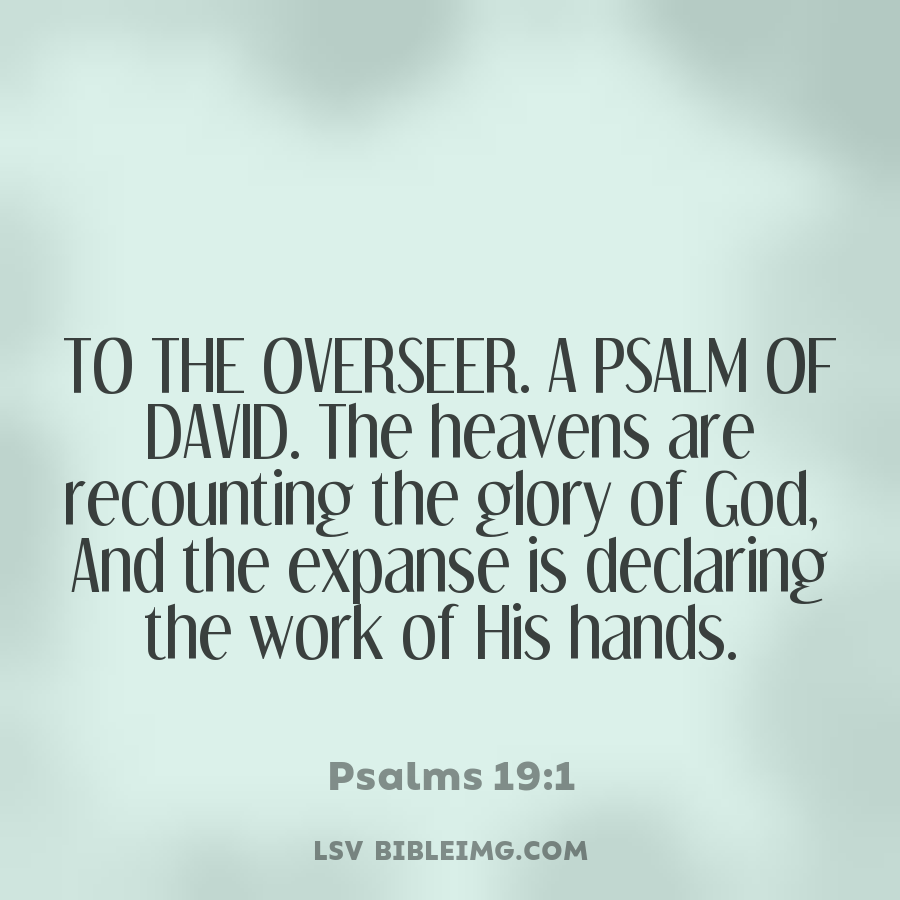 TO THE OVERSEER. A PSALM OF DAVID. The heavens are recounting the glory of God, And the expanse is declaring the work of His hands.