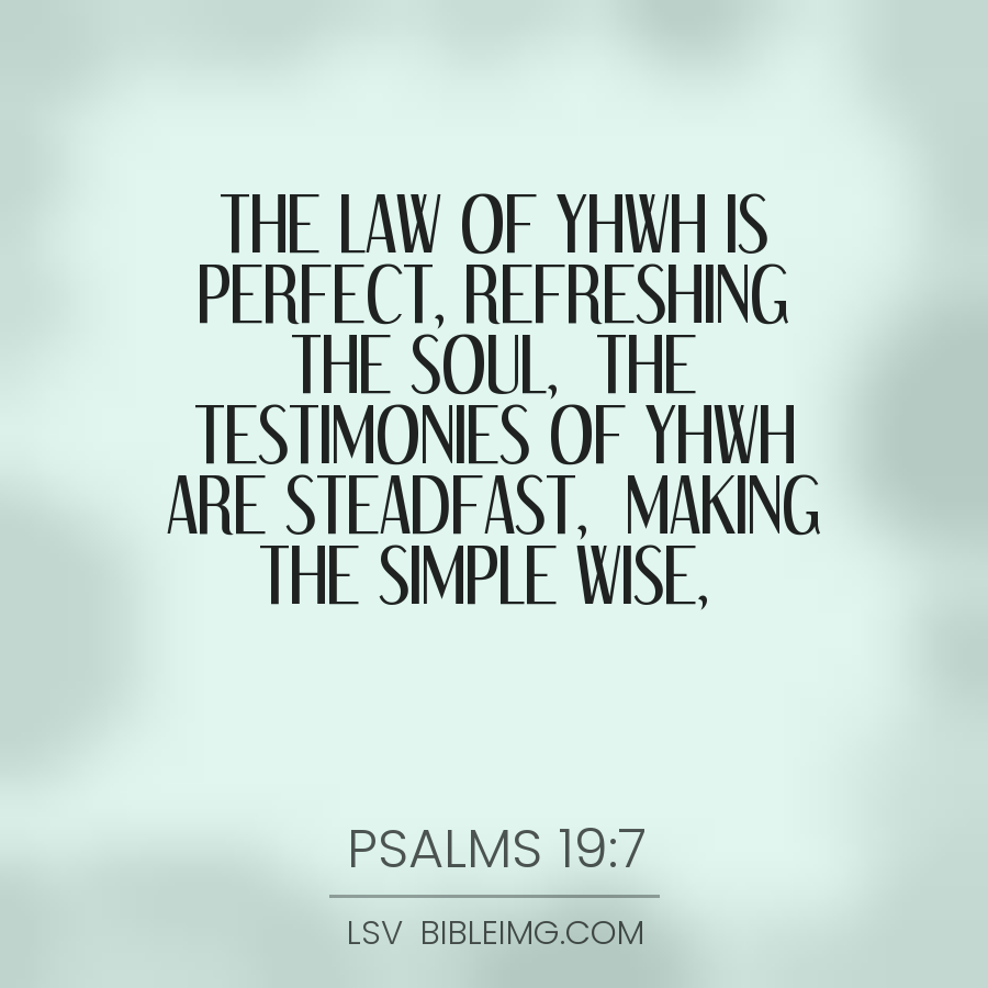 The law of YHWH is perfect, refreshing the soul, The testimonies of YHWH are steadfast, Making the simple wise,