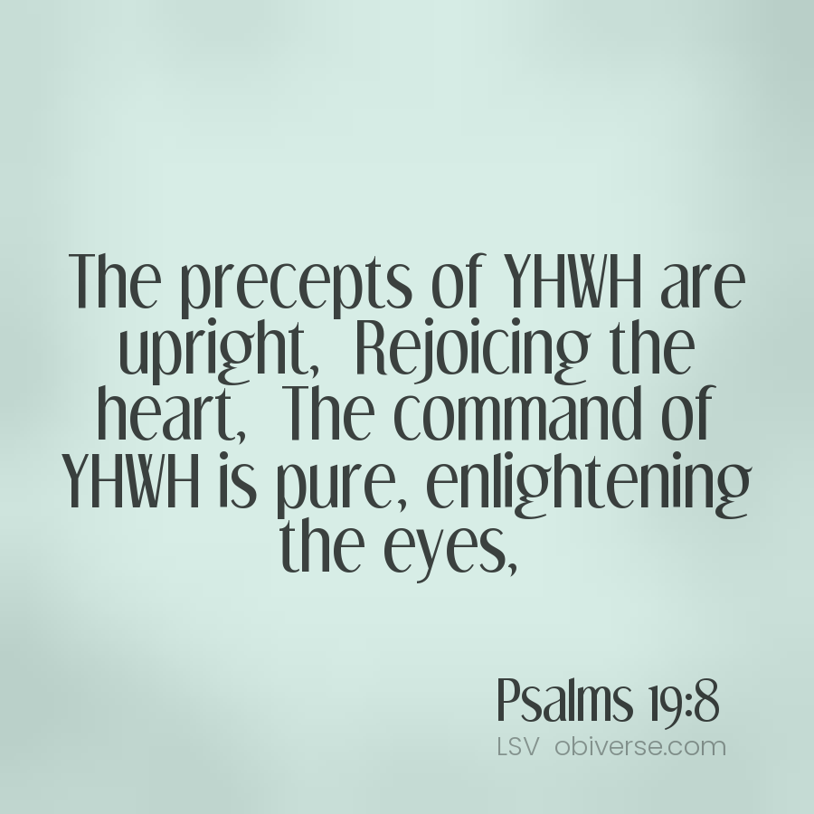 The precepts of YHWH are upright, Rejoicing the heart, The command of YHWH is pure, enlightening the eyes,