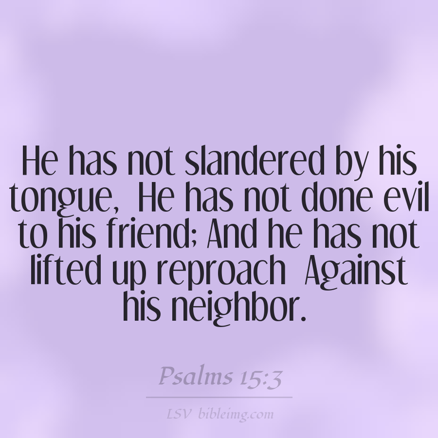 He has not slandered by his tongue, He has not done evil to his friend; And he has not lifted up reproach Against his neighbor.