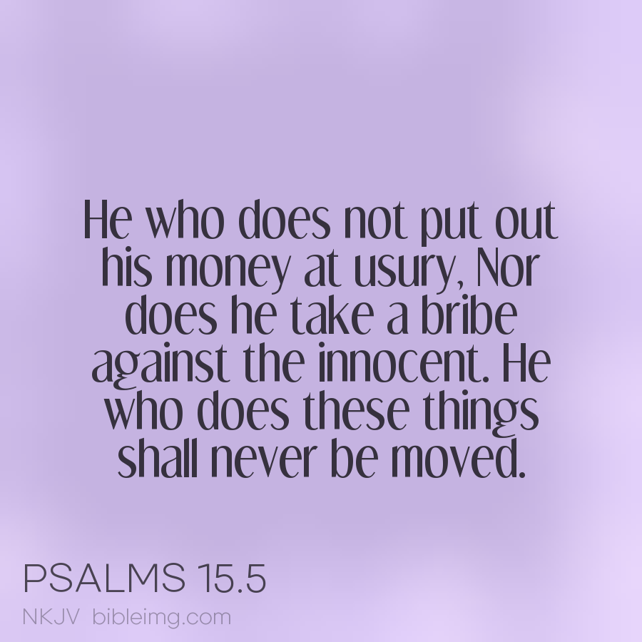 He who does not put out his money at usury, Nor does he take a bribe against the innocent. He who does these things shall never be moved.