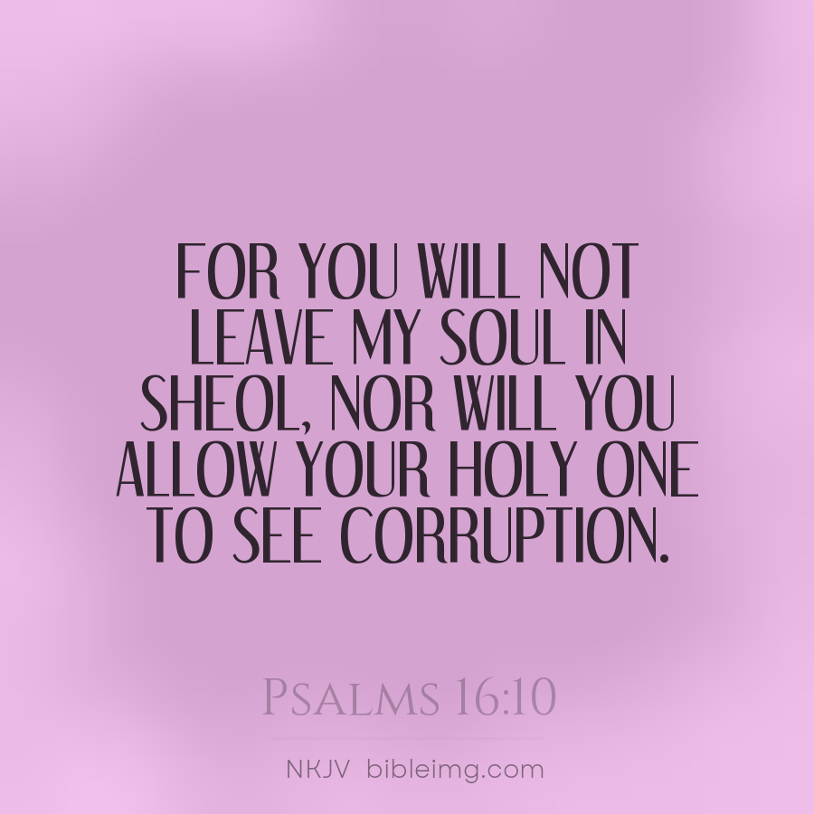 For You will not leave my soul in Sheol, Nor will You allow Your Holy One to see corruption.