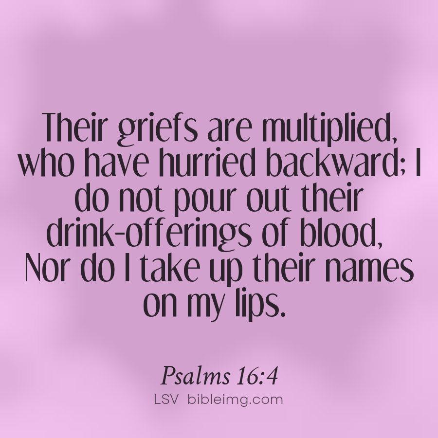Their griefs are multiplied, who have hurried backward; I do not pour out their drink-offerings of blood, Nor do I take up their names on my lips.
