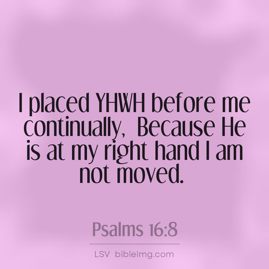 I placed YHWH before me continually, Because He is at my right hand I am not moved.