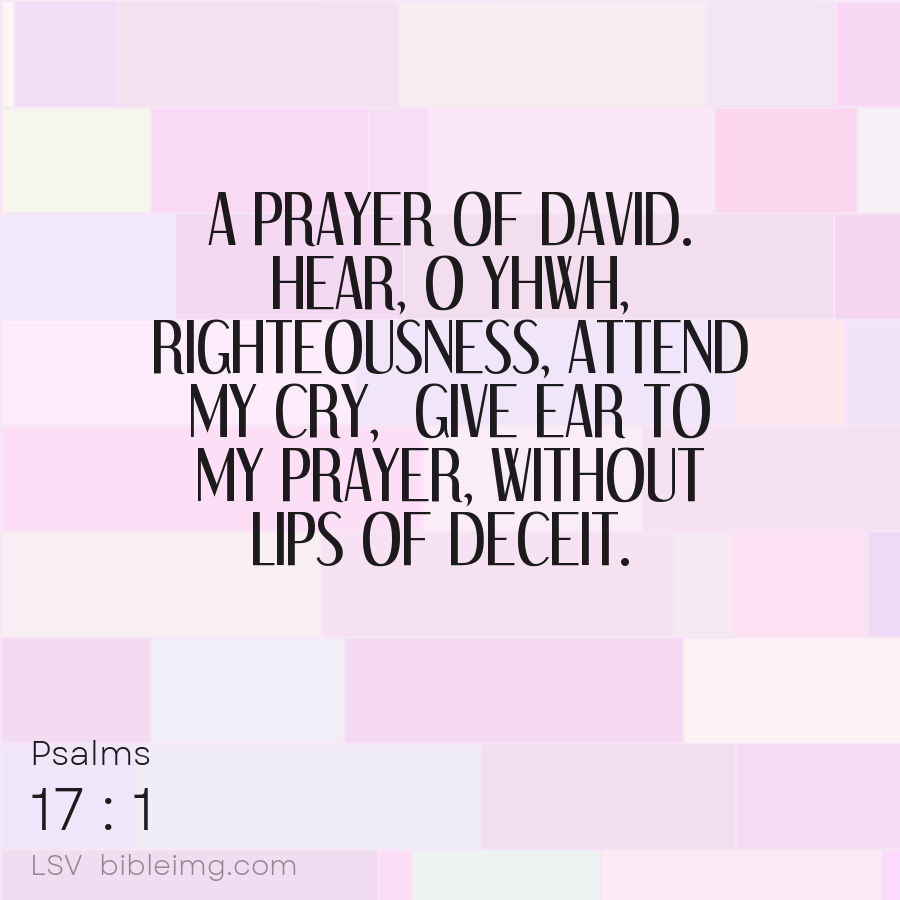 A PRAYER OF DAVID. Hear, O YHWH, righteousness, attend my cry, Give ear to my prayer, without lips of deceit.