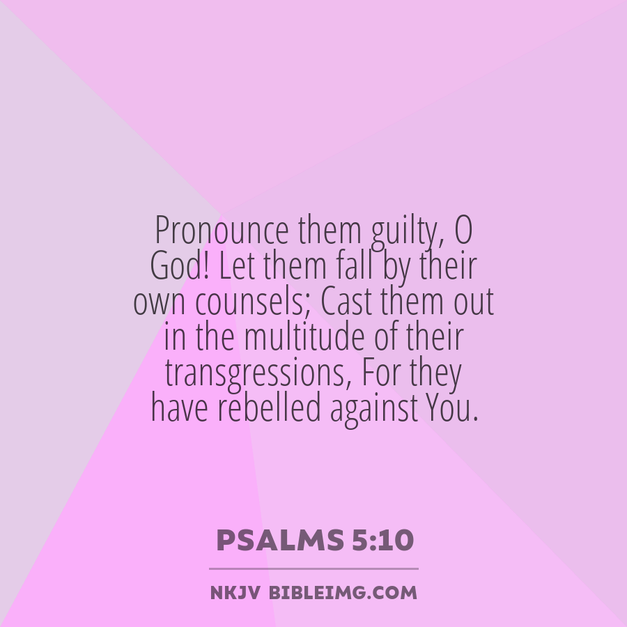 Pronounce them guilty, O God! Let them fall by their own counsels; Cast them out in the multitude of their transgressions, For they have rebelled against You.