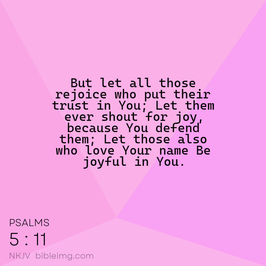 But let all those rejoice who put their trust in You; Let them ever shout for joy, because You defend them; Let those also who love Your name Be joyful in You.