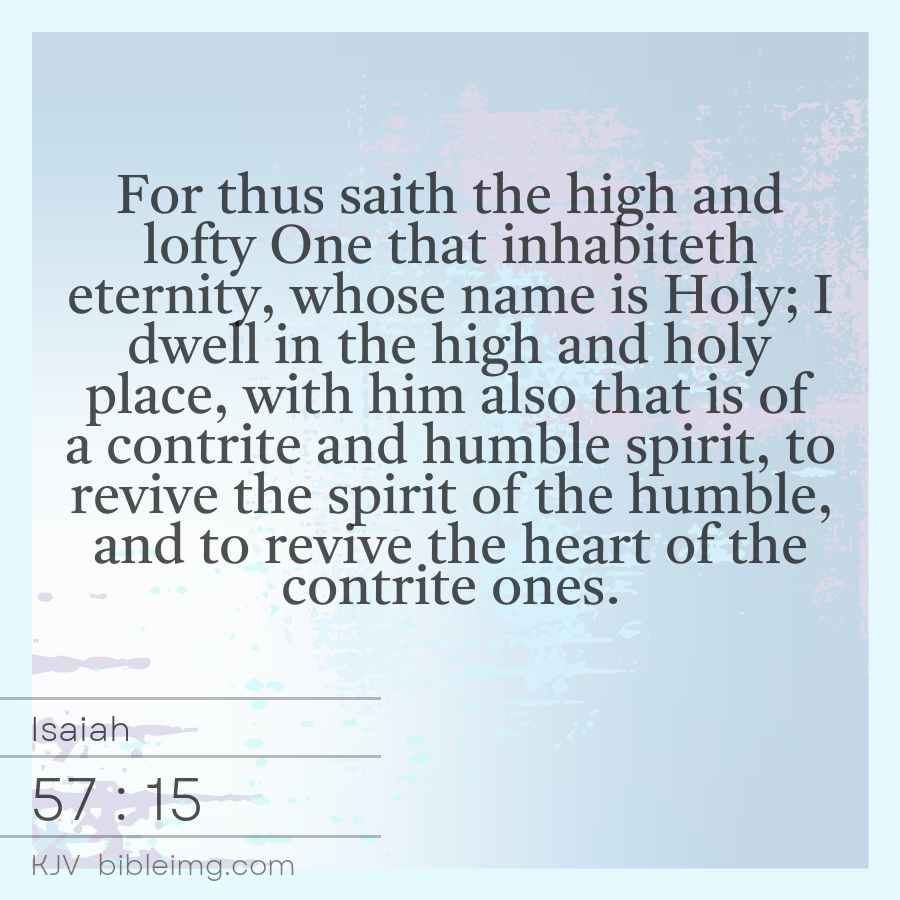 For thus saith the high and lofty One that inhabiteth eternity, whose name is Holy; I dwell in the high and holy place, with him also that is of a contrite and humble spirit, to revive the spirit of the humble, and to revive the heart of the contrite ones.