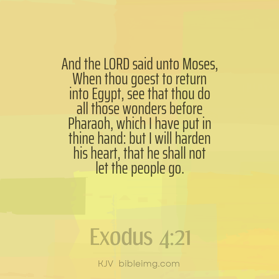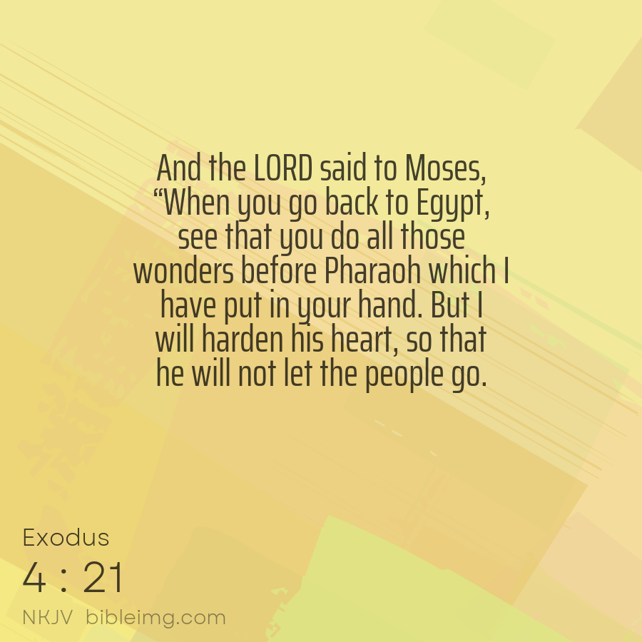 And the LORD said unto Moses, When thou goest to return into Egypt, see that thou do all those wonders before Pharaoh, which I have put in thine hand: but I will harden his heart, that he shall not let the people go.